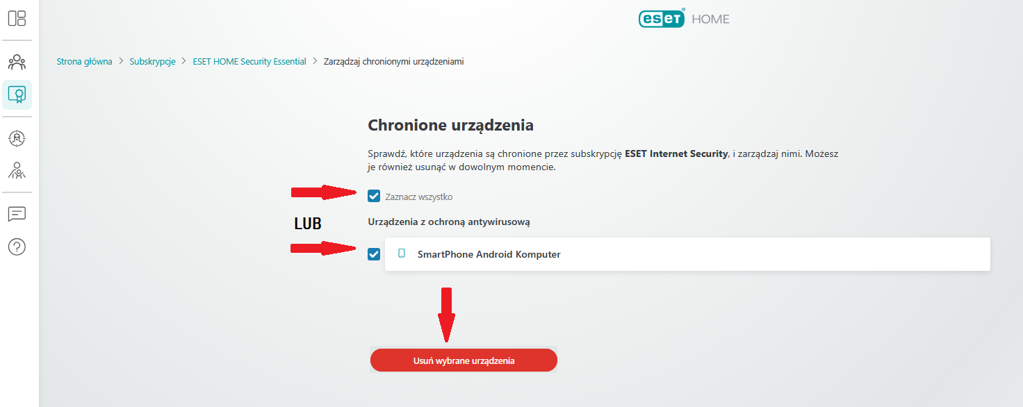 Usuwanie nieaktywnego/niechcianego urządzenia z subskrypcji ESET przy użyciu konta ESET HOME